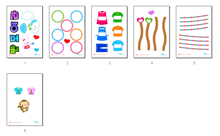 옷과 동물들을 비롯한 이미지 아이콘, 글상자, 타이틀POP로 구성된 출석판으로서,