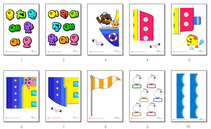 배를 타고 있는 동물들을 비롯한 이미지 아이콘, 글상자, 타이틀POP로 구성된 출석판으로서,