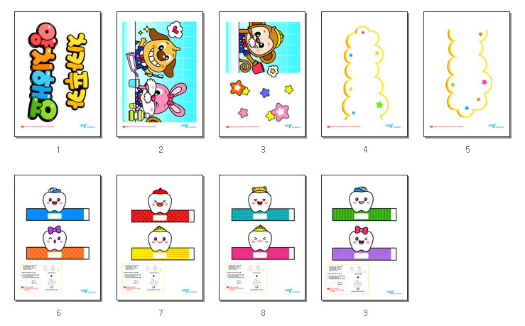 귀여운 타이니애니멀즈와 이미지아이콘, 글상자, 타이틀POP로 구성된 양치판으로서,