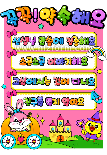 본 콘텐츠는 니즈폼(www.nizform.com)을 통해 서비스되는 약속판(타이니애니멀즈동화)(으)로서, 일반(A4) 프린터로 프린트하여 오린 뒤 4절지에 붙여 완성하시면 됩니다.