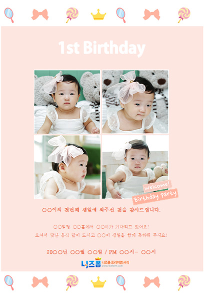본 서식은 니즈폼(www.nizform.com)을 통해 서비스되는 돌잔치안내문(공주님)(으)로서, 다운로드 받으신 후, 내용을 수정하거나 입력하여 사용하시면 됩니다.