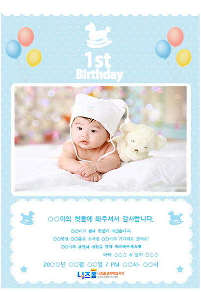 본 서식은 니즈폼(www.nizform.com)을 통해 서비스되는 돌잔치안내문(목마)(으)로서, 다운로드 받으신 후, 내용을 수정하거나 입력하여 사용하시면 됩니다.
