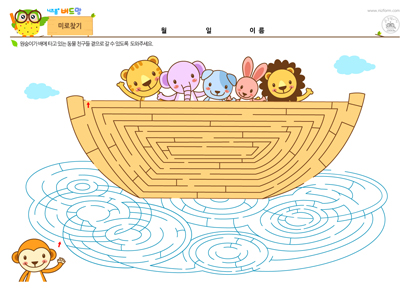 본 서식은 니즈폼(www.nizform.com)을 통해 서비스되는 미로찾기_길찾기(배를타요) 도안입니다.