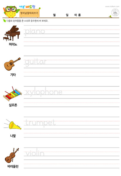 영어단어따라쓰기_영어낱말따라쓰기(학용품/악기)