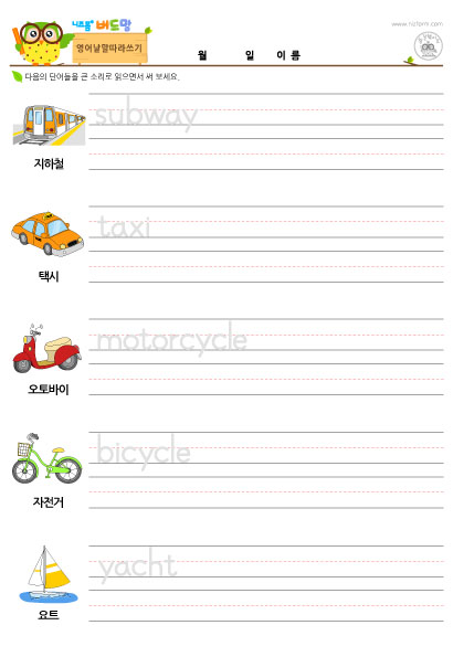 영어단어따라쓰기_영어낱말따라쓰기(교통수단)