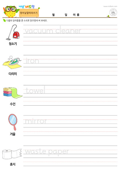본 서식은 니즈폼(www.nizform.com)을 통해 서비스되는 영어단어쓰기(생활용품)입니다.