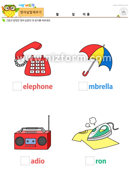 영어낱말채우기는 아이가 영어낱말을 배우기 시작하는 단계에서 단순한 낱말익히기가 아닌 다양한 사물과 어휘를 동시에 배울 수 있으며 사물에 대한 분별력과 집중력, 문제해결능력을 길러주는데 도움이 됩니다.