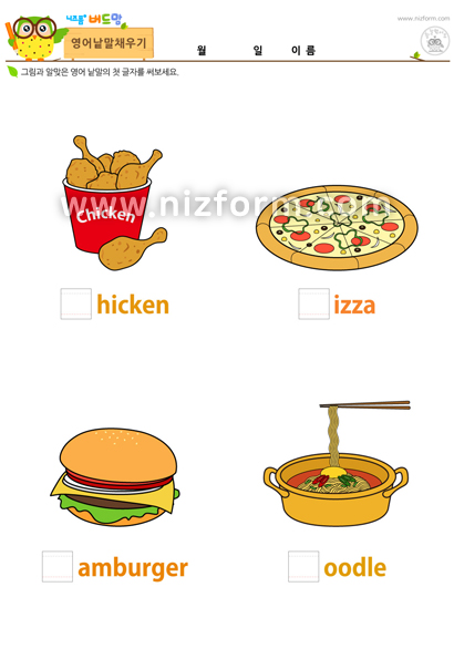 본 서식은 니즈폼(www.nizform.com)을 통해 서비스되는 영어낱말채우기(음식/요리)입니다.