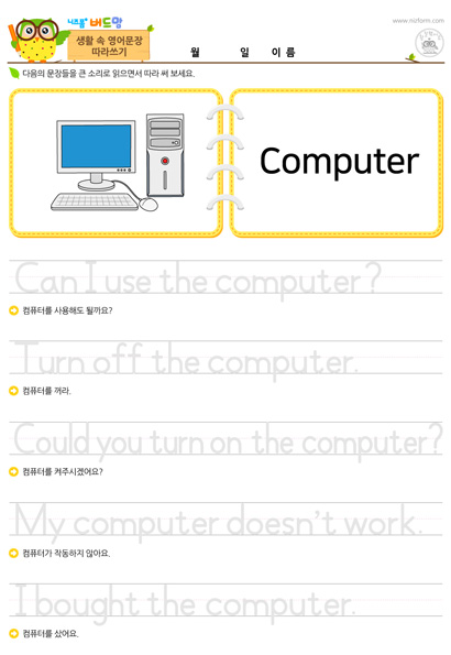 본 콘텐츠는 니즈폼(www.nizform.com)을 통해 서비스되는 영어문장따라쓰기(으)로서, 프린트하여 사용하시면 됩니다.