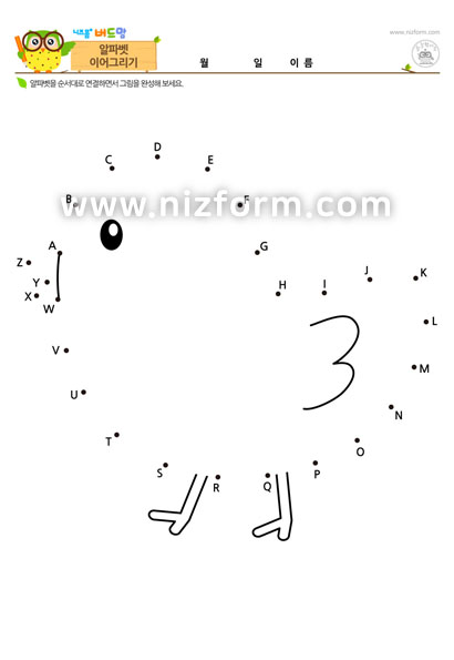 알파벳을 순서대로 연결하여 그림을 완성하는 과정에서 자연스럽게 알파벳을 학습할 수 있습니다.