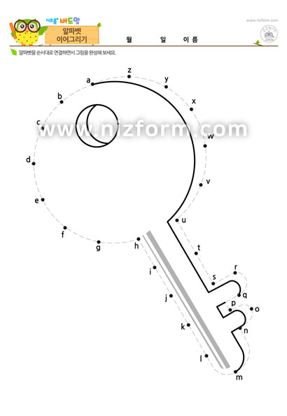 본 콘텐츠는 니즈폼(www.nizform.com)을 통해 서비스되는 알파벳이어그리기_알파벳잇기(열쇠)(으)로서, 프린트한 후 알파벳을 순서대로 연결하면 열쇠가 완성됩니다.