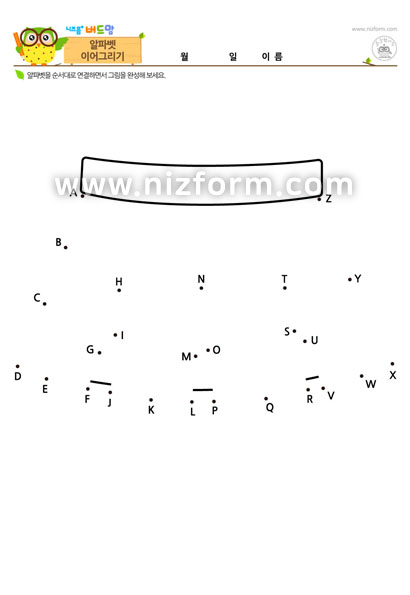 본 콘텐츠는 니즈폼(www.nizform.com)을 통해 서비스되는 알파벳이어그리기_알파벳잇기(치마)(으)로서, 프린트한 후 알파벳을 순서대로 연결하면 치마가 완성됩니다.