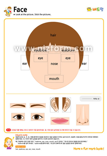 본 콘텐츠는 니즈폼(www.nizform.com)을 통해 서비스되는 영어창의놀이_얼굴놀이(스티커북)(으)로서, 프린트하여 사용하시면 됩니다.