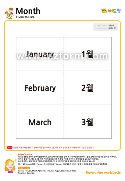 본 콘텐츠는 니즈폼(www.nizform.com)을 통해 서비스되는 영어창의놀이_날짜놀이(카드)(으)로서, 프린트하여 사용하시면 됩니다.