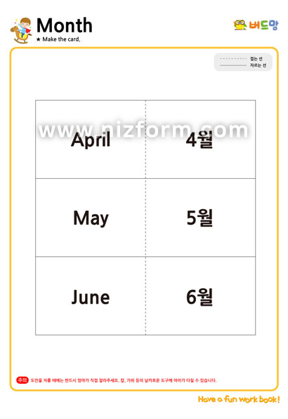 본 콘텐츠는 니즈폼(www.nizform.com)을 통해 서비스되는 영어창의놀이_날짜놀이(카드)(으)로서, 프린트하여 사용하시면 됩니다.