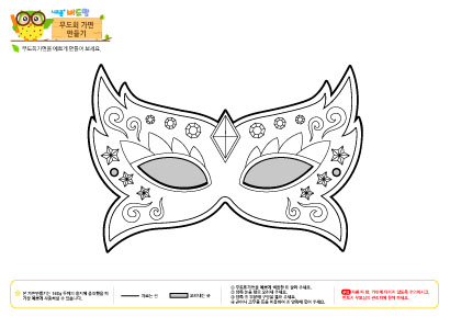 그리고 테두리를 따라 가면을 자른 뒤, 눈부분 구멍과 끈을 연결할 구멍을 뚫어서 사용하시면 됩니다.