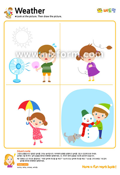 본 콘텐츠는 니즈폼(www.nizform.com)을 통해 서비스되는 영어창의놀이_날씨놀이(그림그리기)(으)로서, 프린트하여 사용하시면 됩니다.