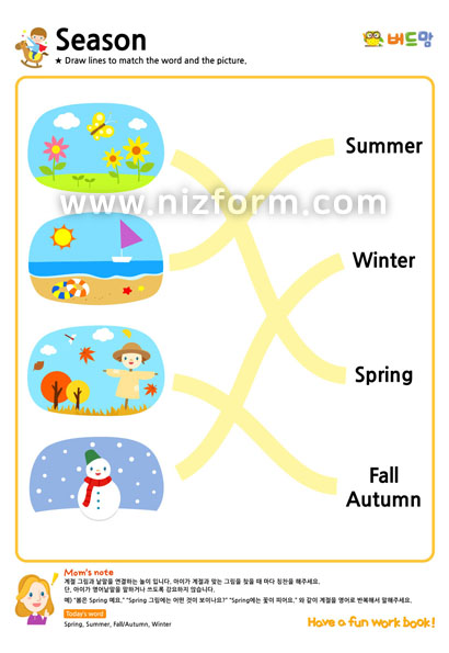 본 콘텐츠는 니즈폼(www.nizform.com)을 통해 서비스되는 영어창의놀이_계절놀이(그림낱말연결하기) (으)로서, 프린트하여 사용하시면 됩니다.