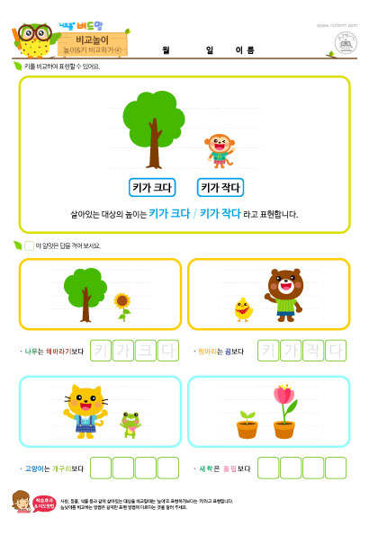 본 콘텐츠는 니즈폼(www.nizform.com)을 통해 서비스되는 비교놀이(높이_키비교하기)(으)로서, 프린트하여 사용하시면 됩니다.