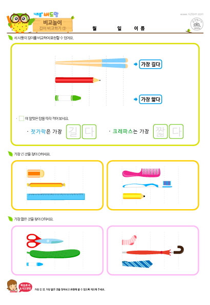본 콘텐츠는 니즈폼(www.nizform.com)을 통해 서비스되는 비교놀이(길이비교하기)(으)로서, 프린트하여 사용하시면 됩니다.