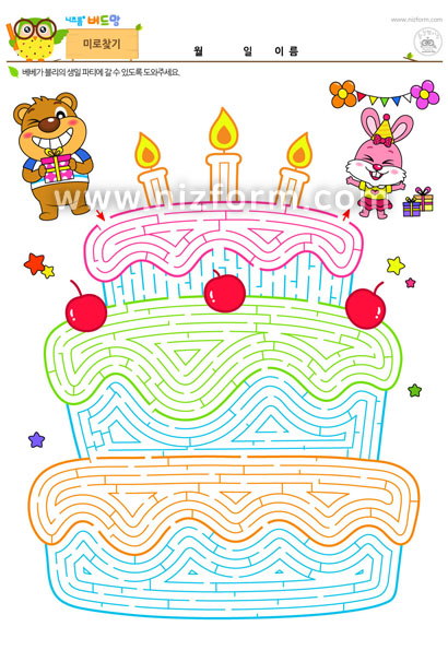 본 콘텐츠는 니즈폼(www.nizform.com)을 통해 서비스되는 미로찾기_길찾기(블리의생일파티)(으)로서, 프린트하여 사용하시면 됩니다.