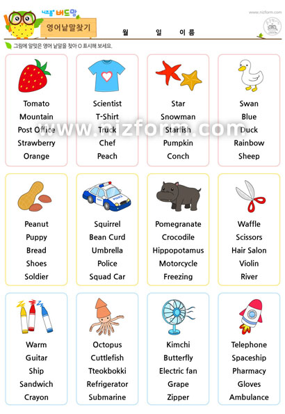 제시된 그림에 알맞은 영어 단어를 찾는 활동입니다.