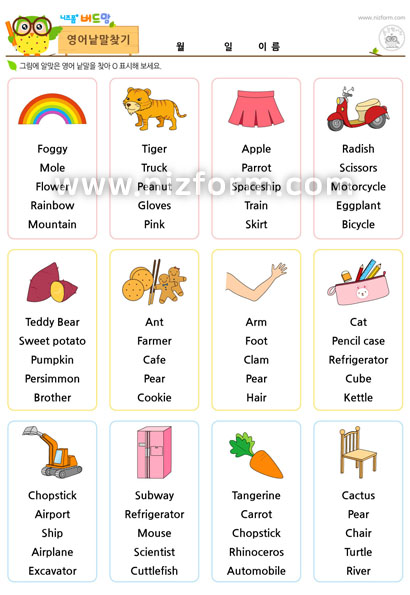 제시된 그림에 알맞은 영어 단어를 찾는 활동입니다.