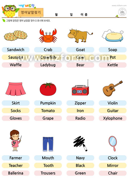 본 콘텐츠는 니즈폼(www.nizform.com)을 통해 서비스되는 영어낱말찾기(Easy)(으)로서, 프린트하여 사용하시면 됩니다.