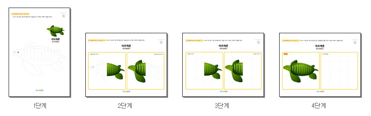 본 콘텐츠는 니즈폼(www.nizform.com)을 통해 서비스되는 공룡그리기(아르케론)(1단계~4단계)는 총4장으로 프린트하여 사용하시면 됩니다.