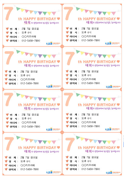 엽서형식의 생일초대장으로서 내용을 수정하거나 입력하신 뒤, 출력하셔서 사이즈에 맞게 잘라서 사용하시면 됩니다.