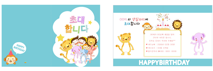생일초대장_생일파티초대장(동물들)(그림입체형)