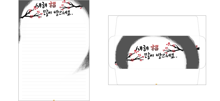 본 콘텐츠는 니즈폼(www.nizform.com)을 통해 서비스되는 새해편지지_설날편지봉투세트(매화가지)는 가정용 프린트기(A4)로 프린트하여 만들 수 있는 고급 편지지 세트입니다.