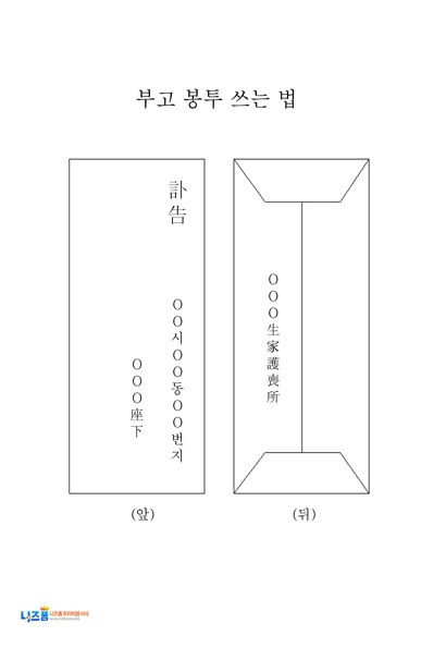 본 서식은 니즈폼(www.nizform.com)을 통해 서비스되는 부고봉투쓰는법 입니다.