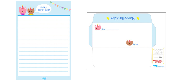 본 콘텐츠는 니즈폼(www.nizform.com)을 통해 서비스되는 생일편지지_편지봉투세트(토끼와곰돌이)는 가정용 프린트기(A4)로 프린트하여 만들 수 있는 고급 편지지 세트입니다.