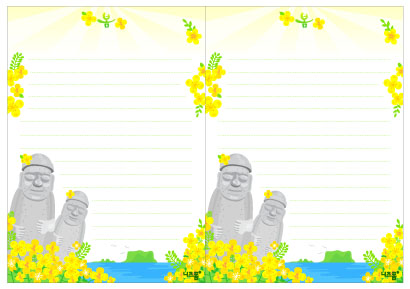 본 콘텐츠는 니즈폼(www.nizform.com)을 통해 서비스되는 1/2편지지(유채꽃과돌하루방)로서 프린트하신 후, 선에 맞춰 잘라주시면 약 A5사이즈(14x19.5cm)의 편지지 2장이 됩니다.