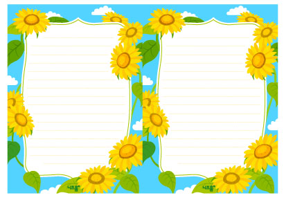 본 콘텐츠는 니즈폼(www.nizform.com)을 통해 서비스되는 1/2편지지(해바라기)로서 프린트하신 후, 선에 맞춰 잘라주시면 약 A5사이즈(14x19.5cm)의 편지지 2장이 됩니다.