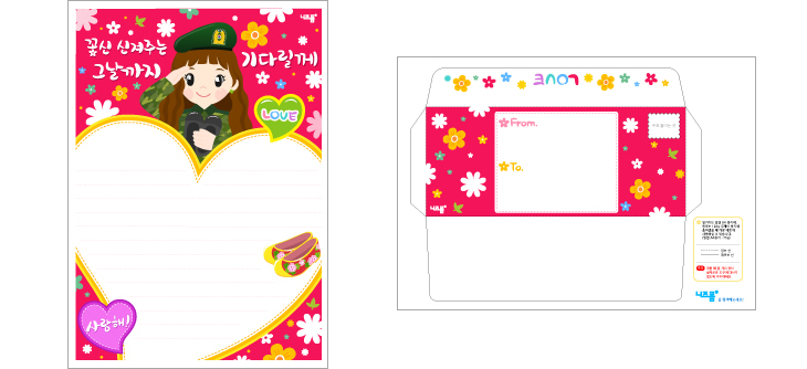 본 콘텐츠는 니즈폼(www.nizform.com)을 통해 서비스되는 군인편지지_편지봉투세트(고무신과꽃신)은 가정용 프린트기(A4)로 프린트하여 만들 수 있는 고급 편지지 세트입니다.