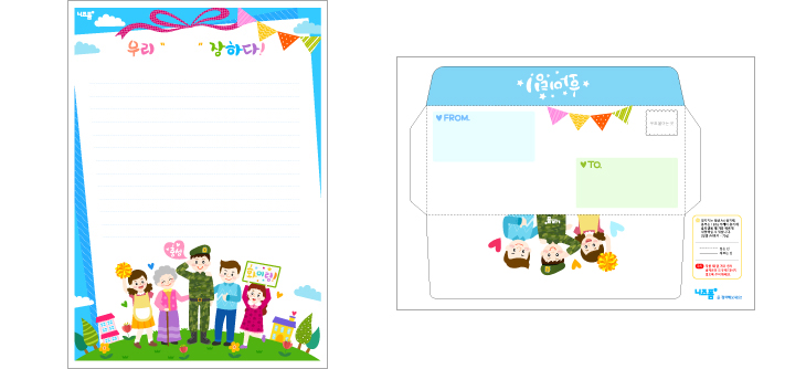 군인편지지_편지봉투세트(응원) 프린트하기