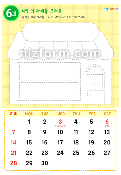 본 콘텐츠는 니즈폼(www.nizform.com)을 통해 서비스되는 2026년달력_미술놀이(6월)(으)로서, 프린트하여 사용하시면 됩니다.