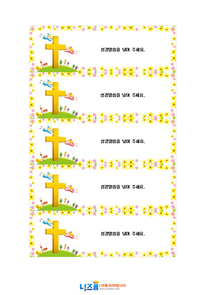 본 서식은 니즈폼(www.nizform.com)을 통해 서비스되는 성경암송카드(십자가와천사)(으)로서, 다운로드 받으신 후, 내용을 수정하거나 입력하여 사용하시면 됩니다.