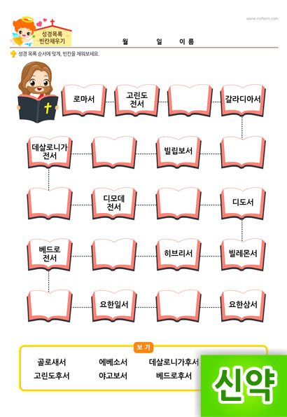 본 콘텐츠는 니즈폼(www.nizform.com)을 통해 서비스되는 성경목록빈칸채우기(신약) (으)로서, 프린트하여 사용하시면 됩니다.