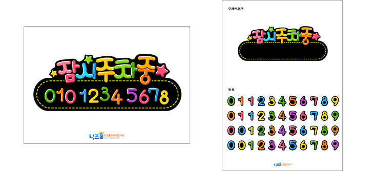 주차번호판과 직접 조합하실 수 있는 숫자들로 구성되어 있으며, 출력하셔서 주차번호판과 핸드폰 번호에 맞게 숫자를 자른 다음 주차번호판 위에 숫자를 붙여서 사용하시면 됩니다.