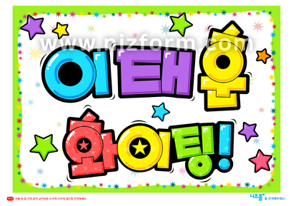 본 콘텐츠는 니즈폼(www.nizform.com)을 통해 서비스되는 스포츠응원피켓(화이팅)(으)로서, 프린트 후 따로 프린트한 글씨를 오려서 붙이거나 원하는 글씨를 써넣어 사용하시면 됩니다.