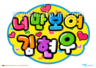 본 콘텐츠는 니즈폼(www.nizform.com)을 통해 서비스되는 연예인응원피켓(너만보여)(으)로서, 프린트 후 따로 프린트한 글씨를 오려서 붙이거나 원하는 글씨를 써넣어 사용하시면 됩니다.