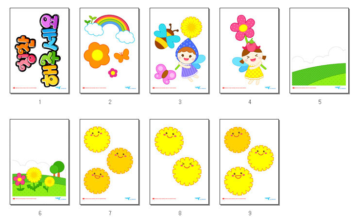 타이틀POP로 구성된 화사한 봄 느낌의 칭찬판으로서, 프린트(A4)되는 장수는 총 9장입니다.