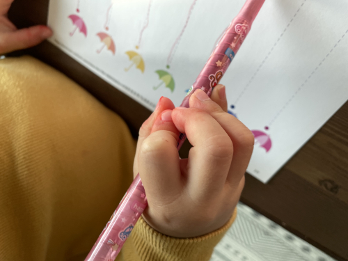 색연필을 꼭 쥐고 있는 아이의 모습이 귀엽습니다∼