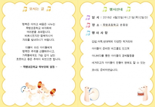 3241 20일에 있는 바자회 초대장을 만들었어요~ 학교 이례 ... pp0**** 2016-04-08