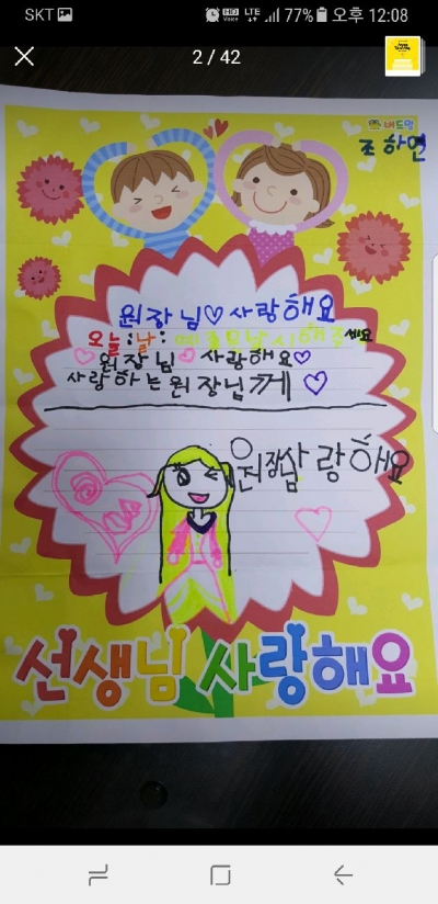 딸이 어린이집원장님께 정성그레 편지를 썼어요 원장님이 ...