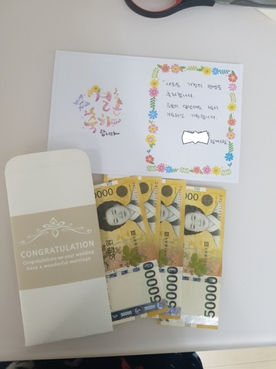 결혼식축의금봉투와 카드를 활용해서 예쁘게 완성하셨네요^-^