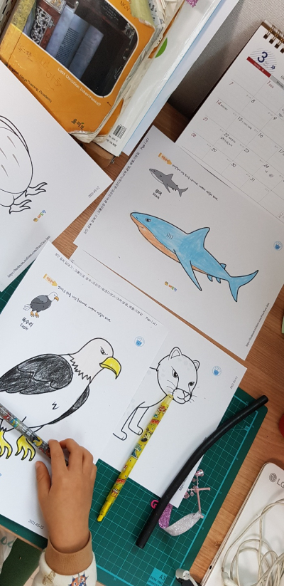 어쩌다 홈스쿨링 중인 7세 아이 좋아하는 상어랑 부엉이 독수리 보더니 넘 신나 하네요!